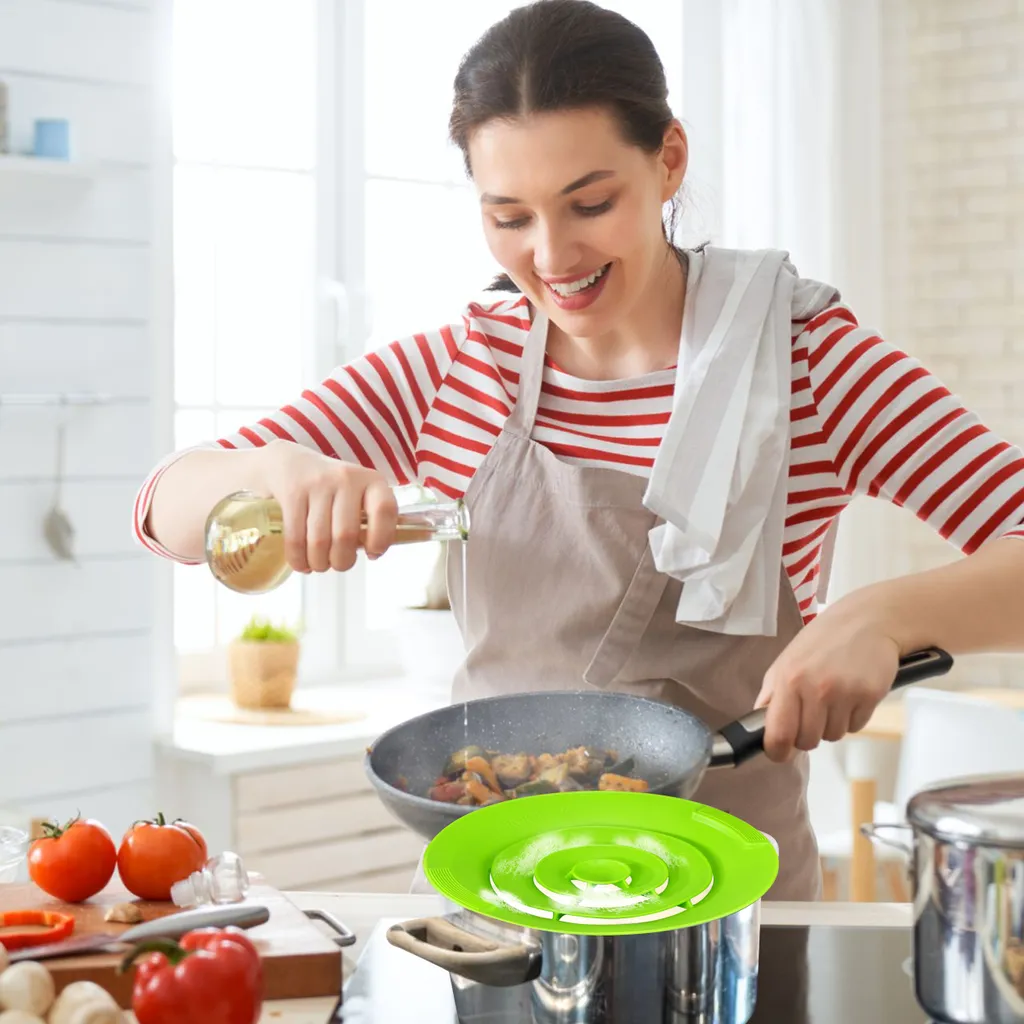 Der Silikonschutz schützt Ihren Herd vor Spritzwasser und überkochendem Wasser. Legen Sie einfach den Deckel auf Ihren Topf und das Wasser tritt nicht mehr aus dem Topf.