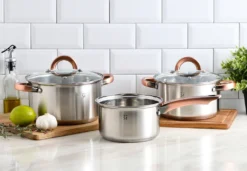- Der Elektro-Dampfgarer verfügt über einen Sockel (mit Bedienfeld), auf dem verschiedenes Zubehör zum Kochen platziert werden kann. Backformen, Töpfe, Dampfgarerzubehör, Glasdeckel und sogar einige Küchenhandschuhe.