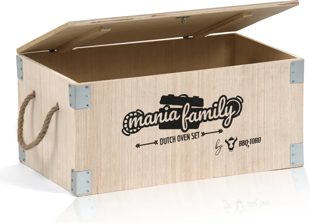 BBQ-Toro 19-teiliges Dutch Oven Set in Holzkiste | Gusseisen Feuertopf und mehr