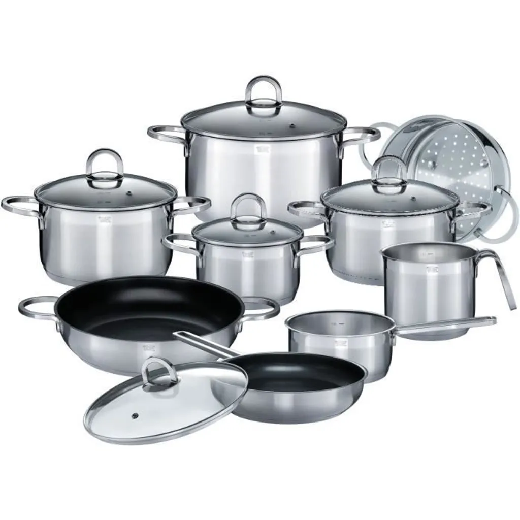 ALARA gesetzt 14pcs Induktion. 1810. massiver Stahl Enthält Faitout 20cm Töpfe 16/20 und 24 cm Topf 16cm, Sauteuse 28cm, 24cm Herd, Dampfgarer 20cm, 14cm und Milchtopfdeckel.
