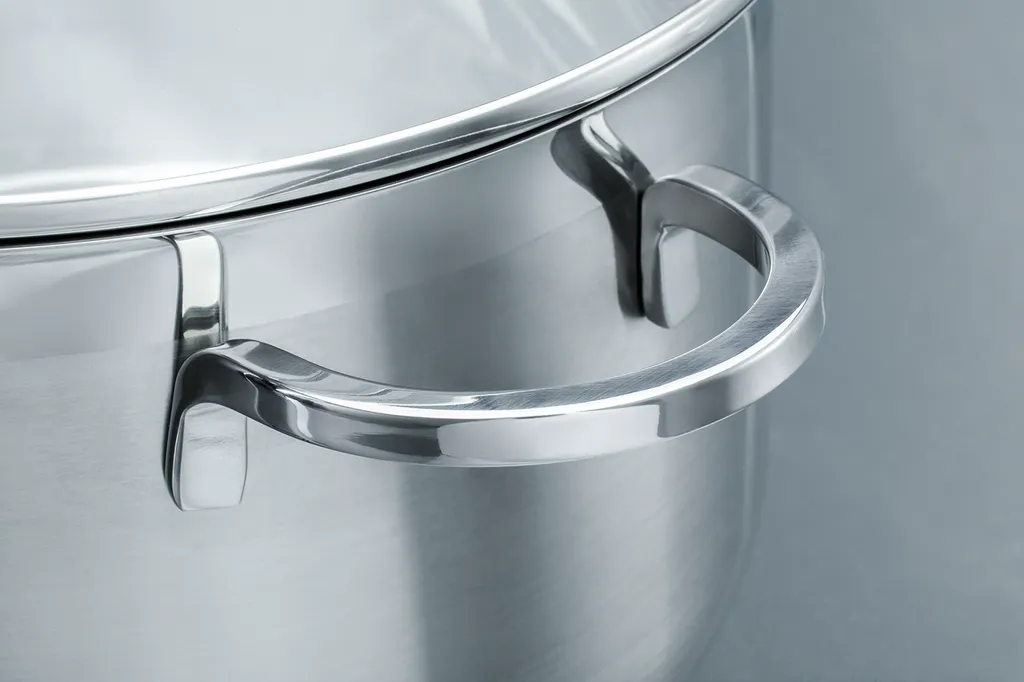 Kurzbeschreibung: Hochwertiger Edelstahl rostfrei 18/8 mit handfreundlichen Kaltmetallgriffen. Innen hochglanzpoliert mit praktischer Literskala und außen seidenmatt. Energiesparender Kapselboden, für alle Herdarten – auch für Induktion geeignet.
