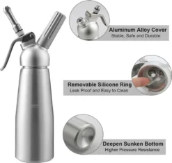 EINFEBEN Sahnespender Sahneschneider Sahnesyphon Sahnebereiter Alu Profi 0.5L Poekelnadel Duese