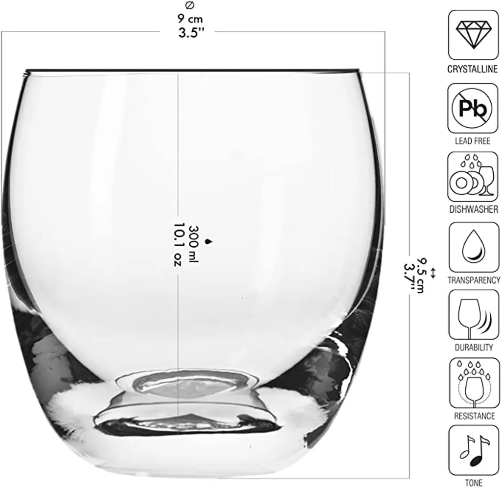 300 ML GLASVOLUMEN – Das transparente Glas mit glattem Rand hat eine Höhe von 95 mm und einen Durchmesser von 90 mm. Es zeichnet sich durch seine außergewöhnliche Haltbarkeit und Widerstandsfähigkeit aus.