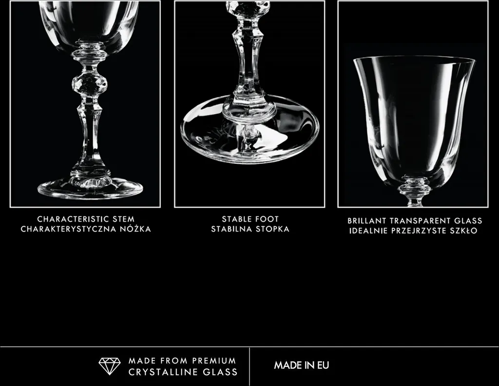 SET MIT 6 GLÄSERN – Unsere eleganten Rotweingläser verbinden interessantes Design mit Funktionalität. Das Set wird sicherlich zu einer außergewöhnlichen Dekoration für jeden Tisch, unabhängig vom Geschirr.