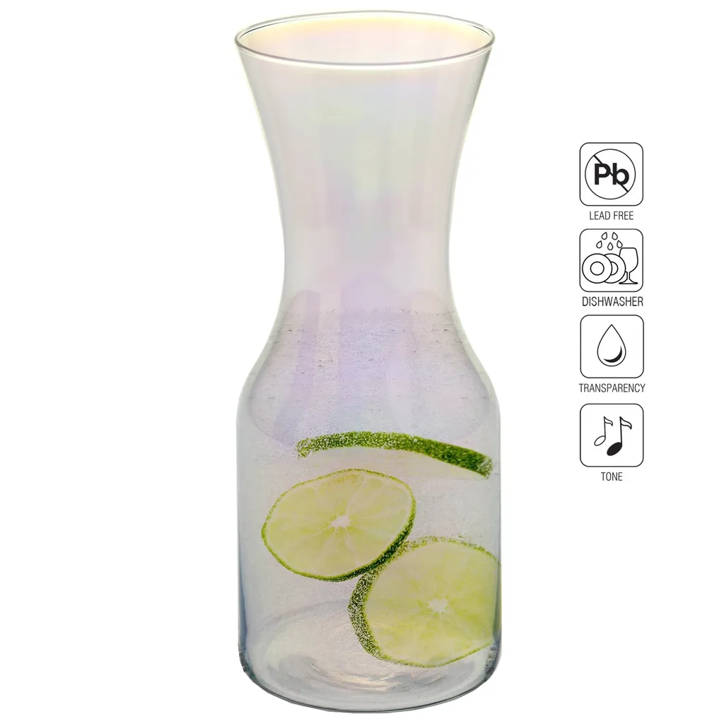 EINZIGARTIG – Der wunderschöne Regenbogeneffekt lässt die Karaffe in vielen Farben funkeln, wodurch definitiv Aufmerksamkeit erregt und dem Glas Einzigartigkeit verliehen wird. Die Karaffe ist empfindlich, daher wird empfohlen sie von Hand zu waschen.