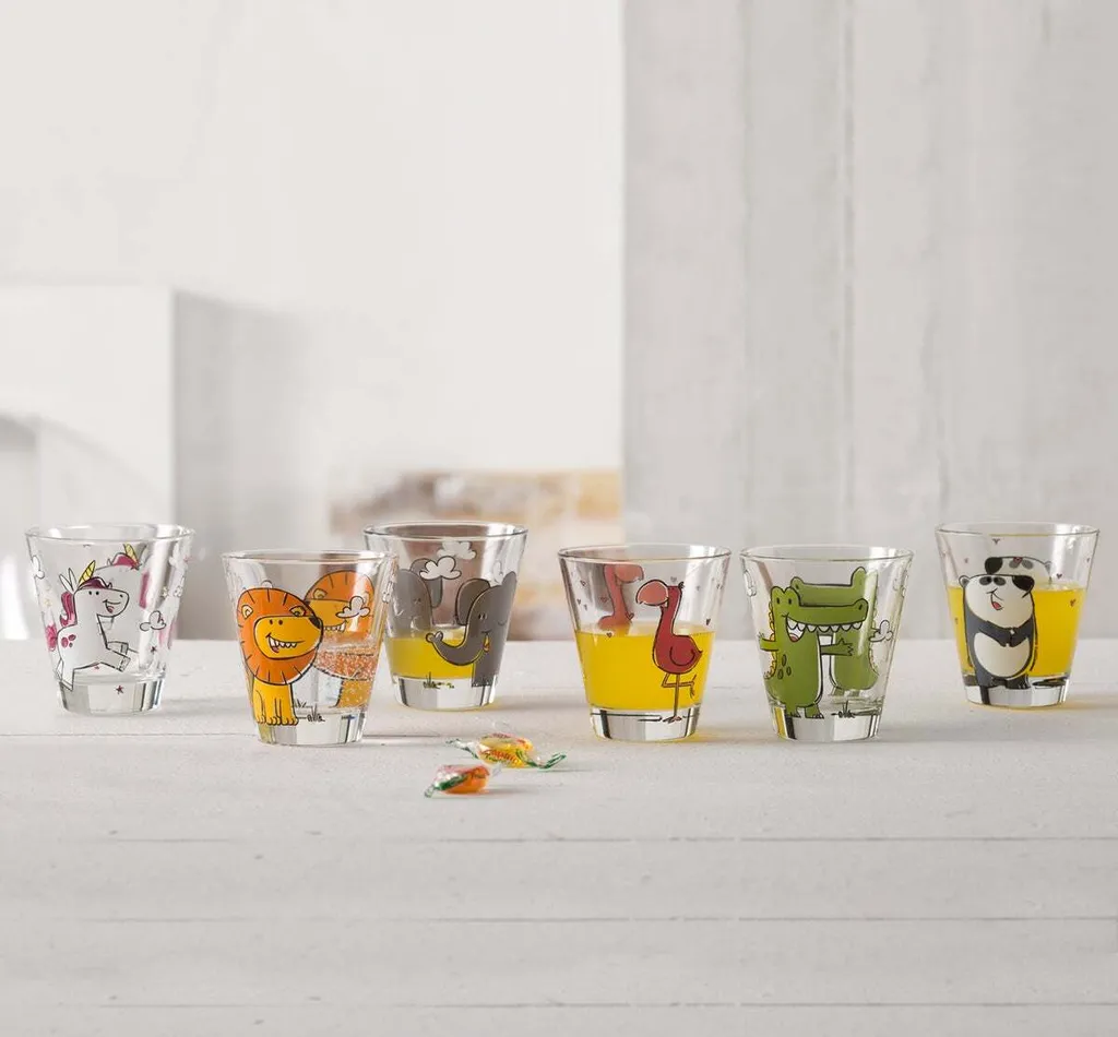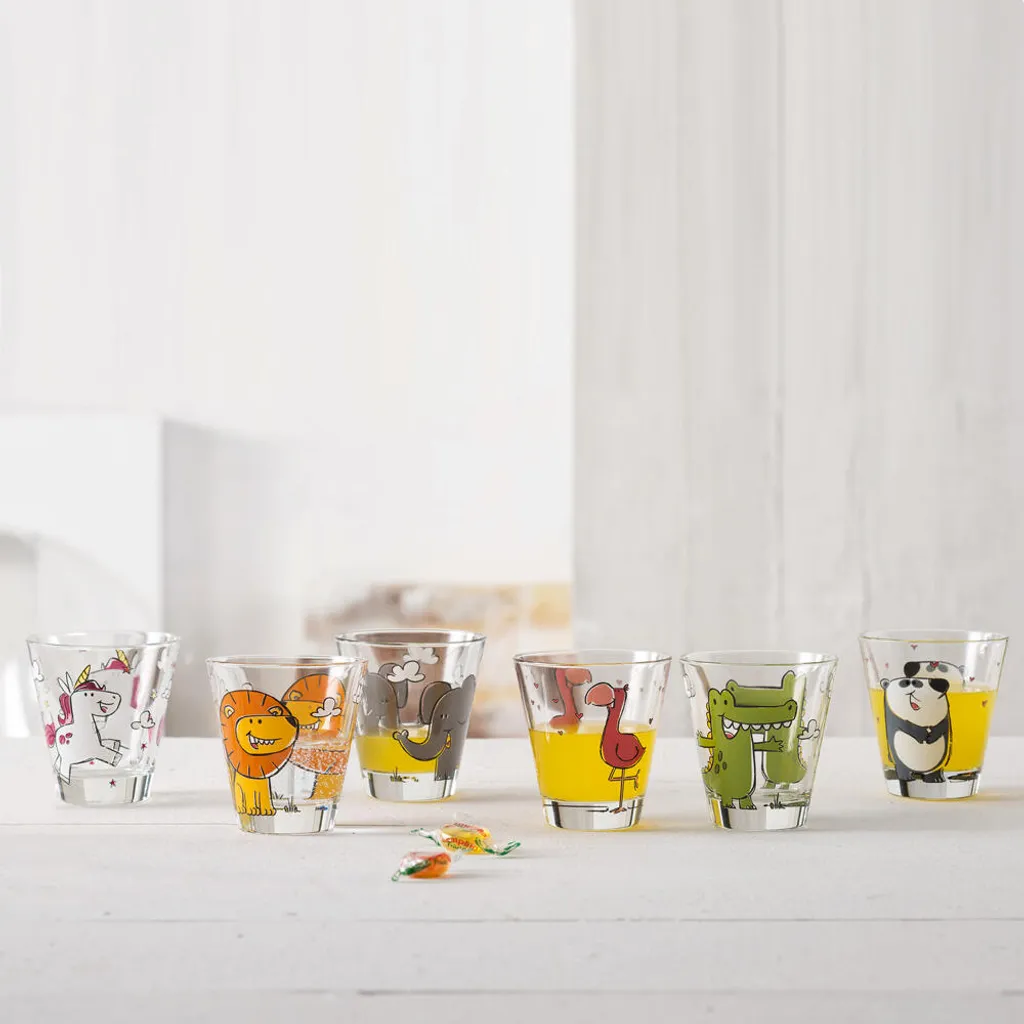Leonardo Vorteilset 6x Kindertrinkglas Bambini Einhorn 801320Glas, ideal für den Alltag, angepasst an kleine Kinderhände, 120 ml Nutzinhalt, lebensmittelgerecht, spülmaschinengeeignetweiß 215 ml, Ø 8,5 cm, H 9 cm