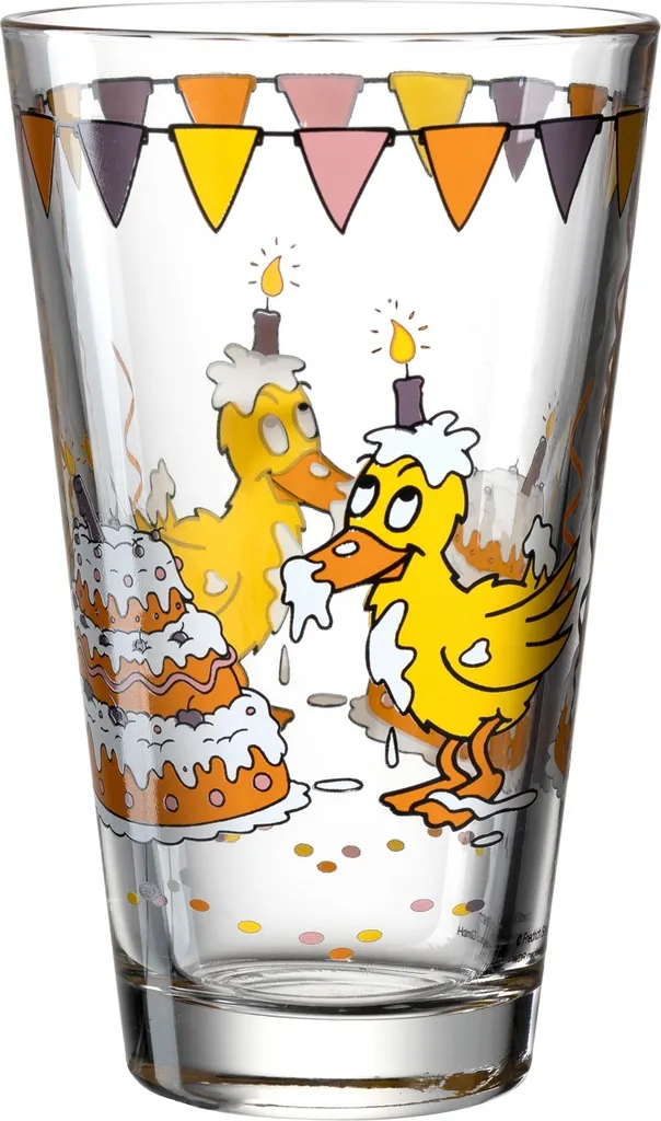 Hier kommt die Maus! Leonardo wird 50 und die Maus feiert mit! Neben den kleinen Mausfans gibt es auch viele große Mausfreunde – und große Fans brauchen natürlich große Gläser! Somit ist die Maus jetzt auch auf hohen Bechern unterwegs. Fröhlich, bunt und verspielt kommt die Ente auf dem Partydekor daher. Und irgendwo hat sich auch die Leonardowolke versteckt. Jetzt aber Gläser hoch, auf Leonardo! Absolut praktisch: Das BAMBINI Trinkglas ist spülmaschinengeeignet! Wieso noch lange zögern? Profitieren Sie von diesem praktischen Trinkglas. Eine schöne Geschenkidee!