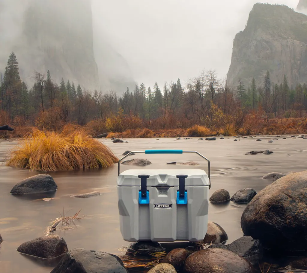 Die coole Kühlbox fürs Campen!Die Lifetime Kühlbox sorgt beim Einsetzen von Eis bis zu 7 Tage für kalte Getränke, ganz egal wo und ganz ohne Strom! Der hochwertige Getränkekühler besteht aus zweischichtigem Urethan, das wesentlich robuster ist als vergleichbarer Kunststoff. In Nordamerika wurde die Kühlbox auf Ihre Stabilität sogar erfolgreich an Grizzly Bären getestet! Aber nicht nur in Sachen Haltbarkeit und Kühlfähigkeit kann der „Cooler“ glänzen. Der stabile und gepolsterte Tragegriff sorgt für einen komfortablen Transport. Getränkeflaschen können Sie sofort schnell und bequem mit dem integrierten Flaschenöffner öffnen. Ob Sie in Nordamerika Campen und die Box gegen Bären sichern wollen, oder ob Sie in Deutschland auf dem Festival Zelten, bei Bedarf können Sie die Kühlbox mit einem Vorhängeschloss abschließen (nicht im Lieferumfang enthalten).absolut robust und witterungsbeständigbis zu 7 Tage kalte Getränke aufbewahreninkl. integriertem FlaschenöffnerDrehventil an der Seitemit bequemen TragegriffenVorrichtung für Vorhängeschloss (nicht im Lieferumfang enthalten)4 rutschfeste Füße
