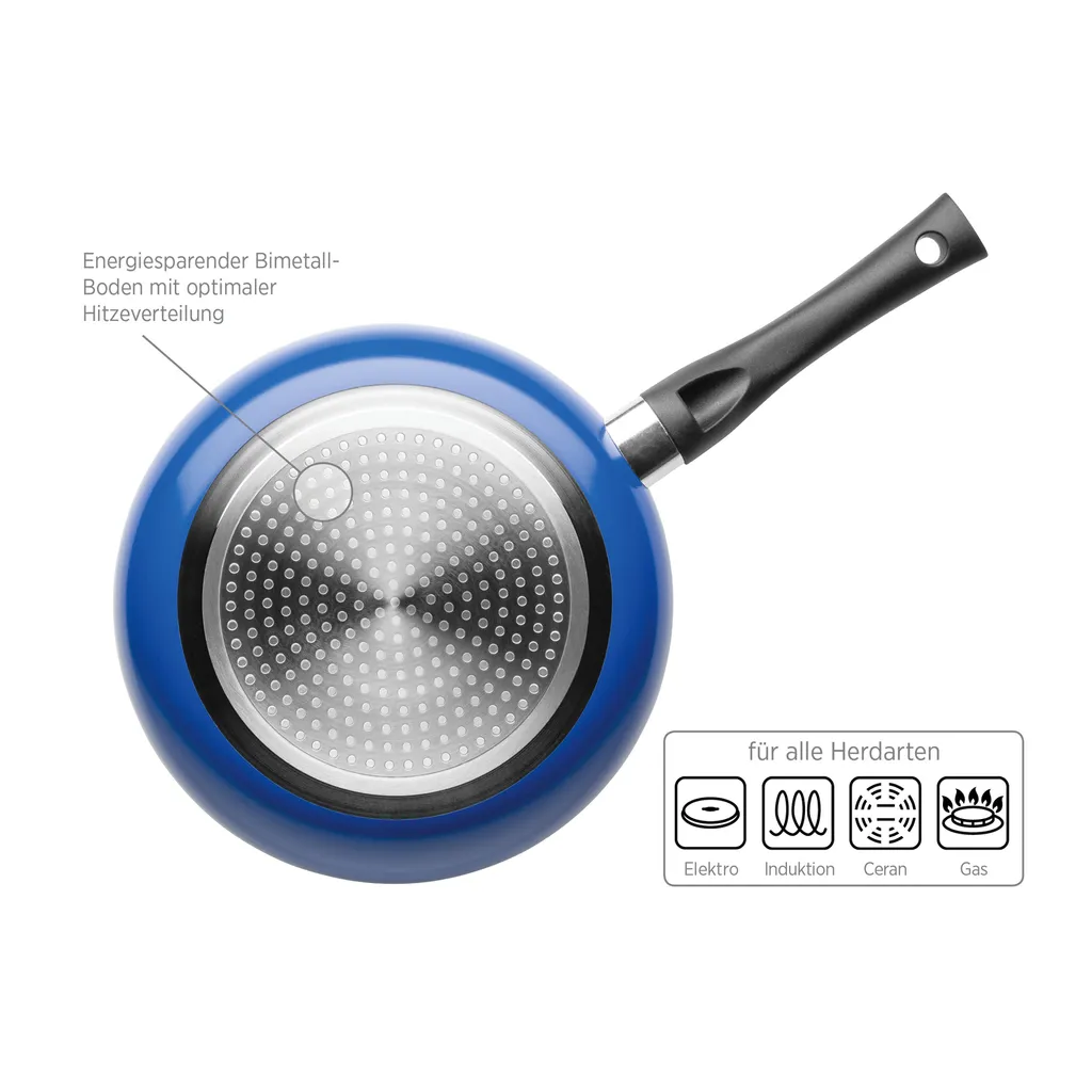 Die Aluminiumpfannen der Serie Harriot in verschiedenen Farben und Größen sind für alle Herdarten geeignet – inklusive Induktion. Sie bestechen durch ihre Leichtigkeit, einen energiesparenden Thermoboden und ihre kratzfeste CERAMIC-Beschichtung in bewährter Schweizer ILAG-Qualität. Der formstabile, absolut plane Thermoboden ermöglicht ein schnelles Erhitzen und eine optimale Energieausnutzung bei gleichmäßiger Hitzeverteilung. Mit dieser Pfanne steht dem gesundheitsbewussten Braten mit nur wenig Öl nichts mehr im Weg. Da die Pfanne auch für die Spülmaschine geeignet ist, entfällt lästiges Schrubben. Für eine besonders lange Lebensdauer empfehlen wir jedoch grundsätzlich bei beschichteten Pfannen die händische Reinigung. Hinweis: Der bei der Größenauswahl angegebene Pfannendurchmesser bezieht sich auf den oberen Pfannenrand.