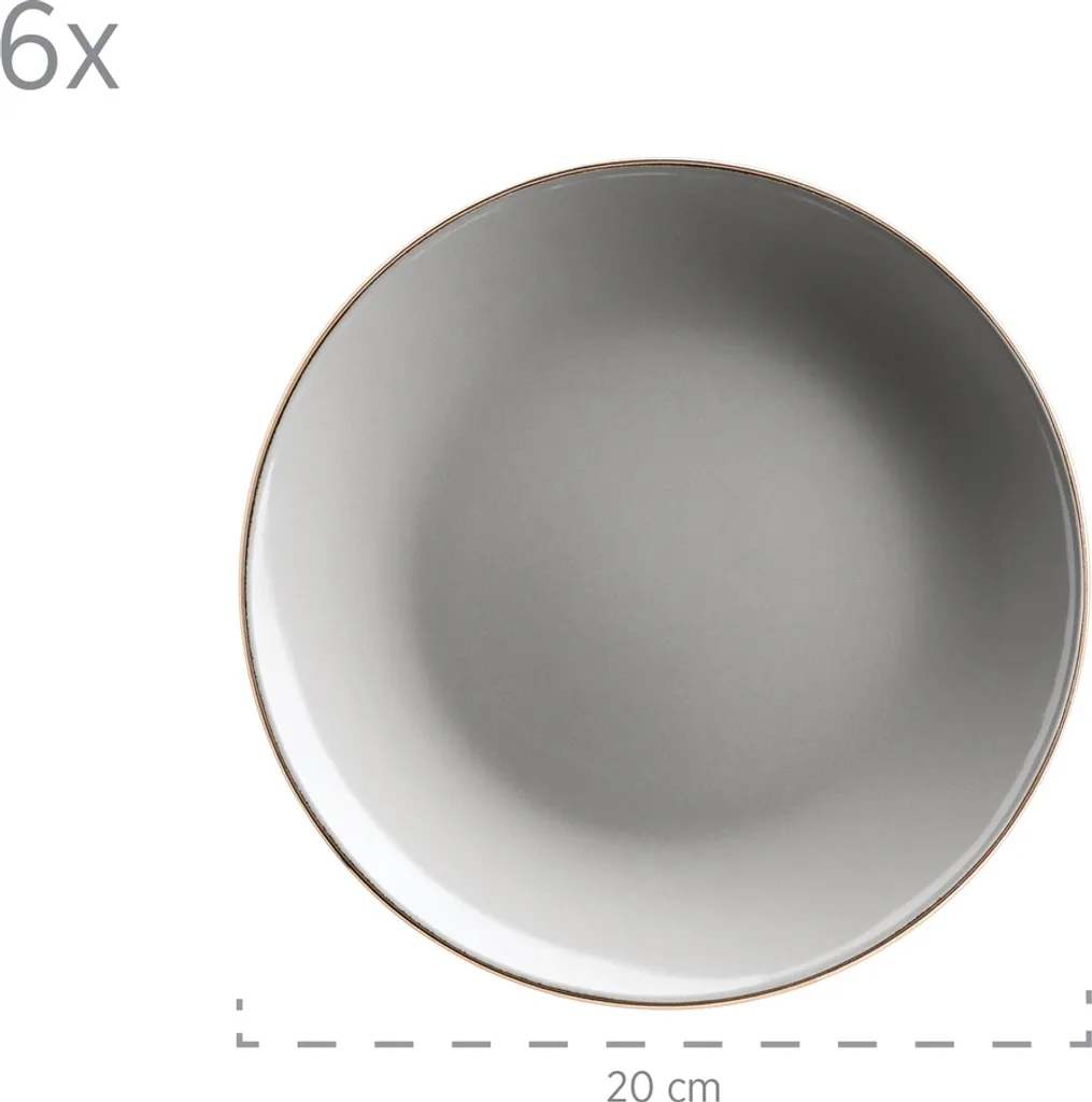 - ‚Dieses edel und dennoch modern gestaltete Geschirrset enthält 6 flache Speiseteller (Ø 27 cm), 6 Dessertteller (Ø 19,6 cm), 6 Kaffeebecher (400 ml Füllvolumen) und 6 Mehrzweckschalen für Müsli, Suppe und vieles mehr (Ø 18,6 cm, 700 ml) – jeweils in warmem Grau