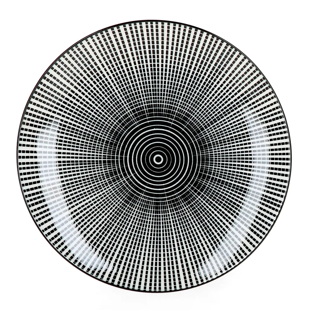 - Das Steingut-Set überzeugt mit seinem schwarzen Linien-Dekor und ist ein echter Hingucker auf Ihrem Tisch