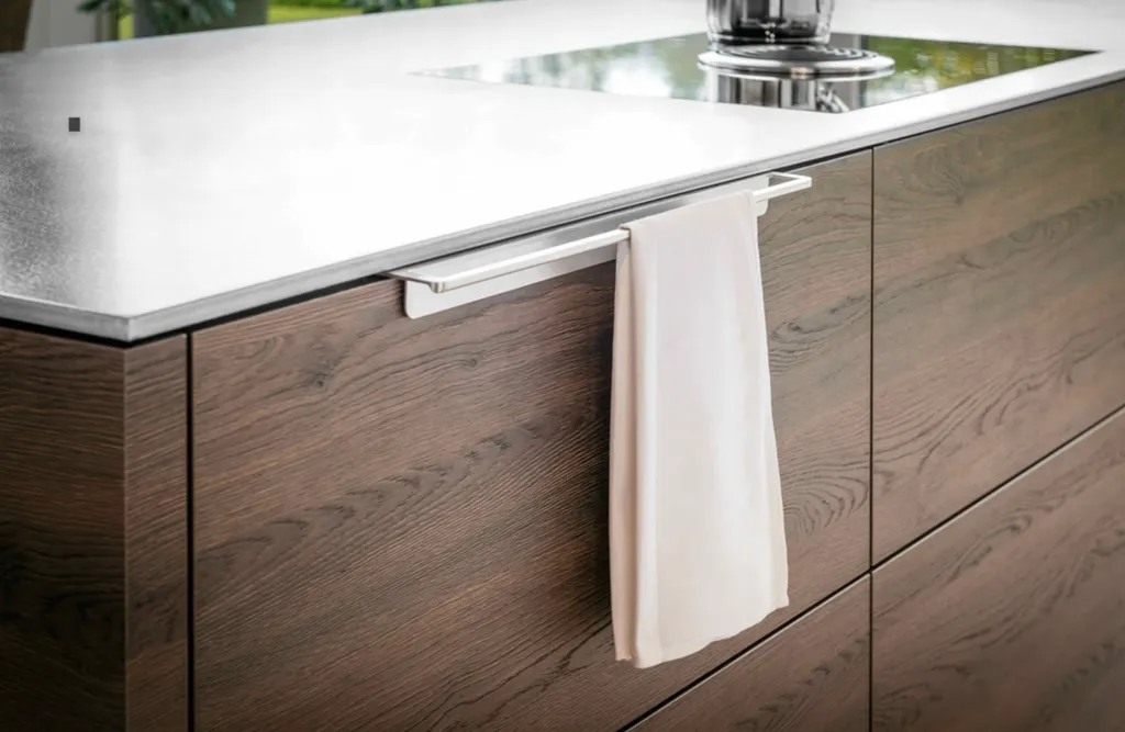 Handtuchhalter für grifflose Küchen, Handtuchhalter, 320 mm edelstahlfarbig, für grifflose Küchen, mit Frontstärke von 19-22 mm, keine Montagearbeiten, einfach aufstecken, Filzeinlage lose beigelegt, vor der Montage einkleben