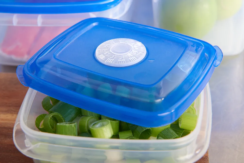 Timer im Deckel erinnert daran, wie lange die Lebensmittel noch haltbar sind!