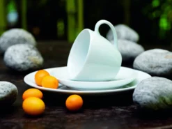 Mäser 931609 Kaffeetassen-Set Derby Für 4 Personen, Porzellan, Weiß/hellblau/beige (1 Set, 8-teilig)