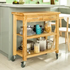 SoBuy Küchenwagen Servierwagen Rollwagen, Aus Metall Und Bambus FKW65-N