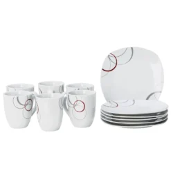 Kaffeeservice Palazzo 18tlg. – Weiß MitNachbildung-Kreisen In Grau Und Dunkelrot – Für 6 Personen