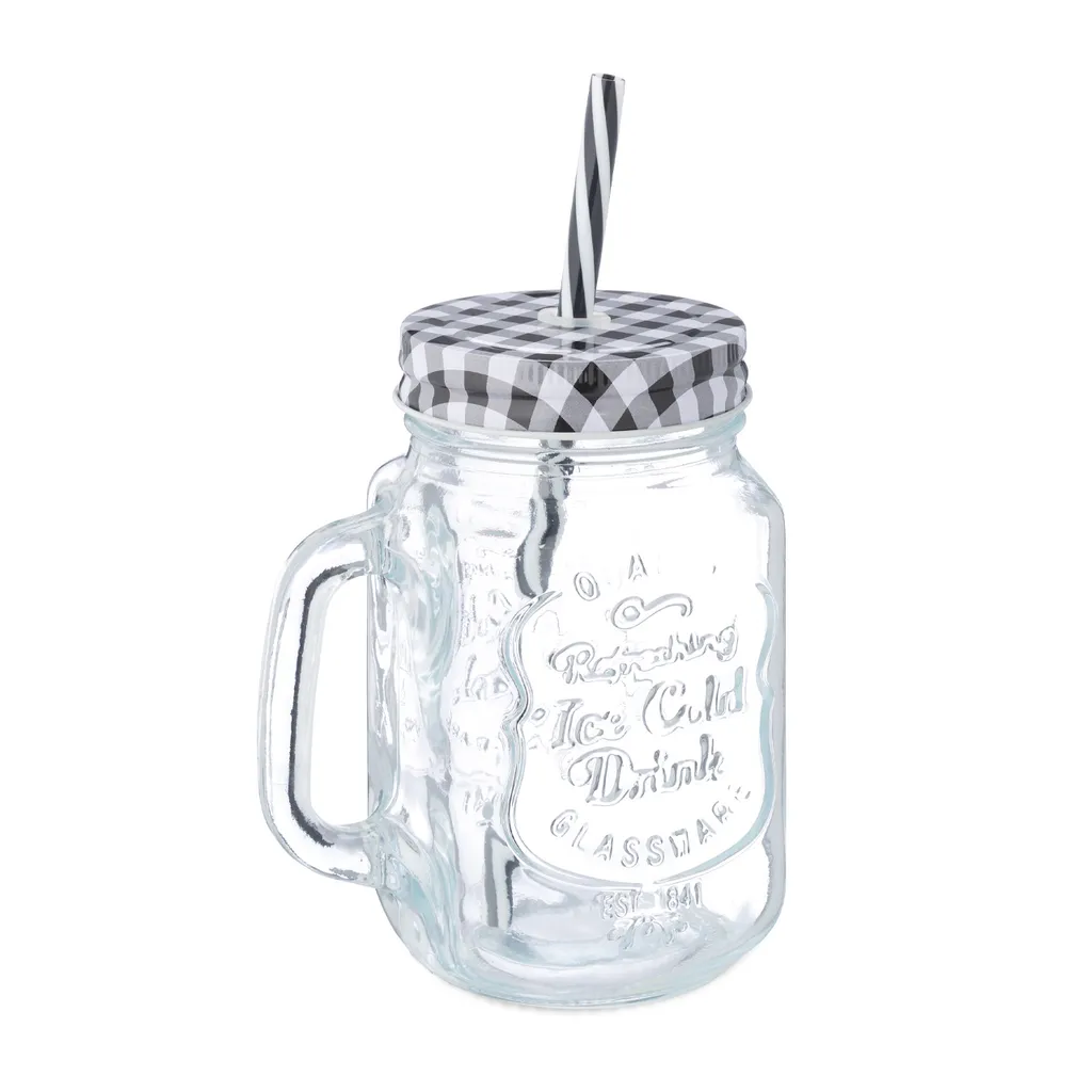 Relaxdays 8er Set Trinkgläser Mit Deckel Kariert