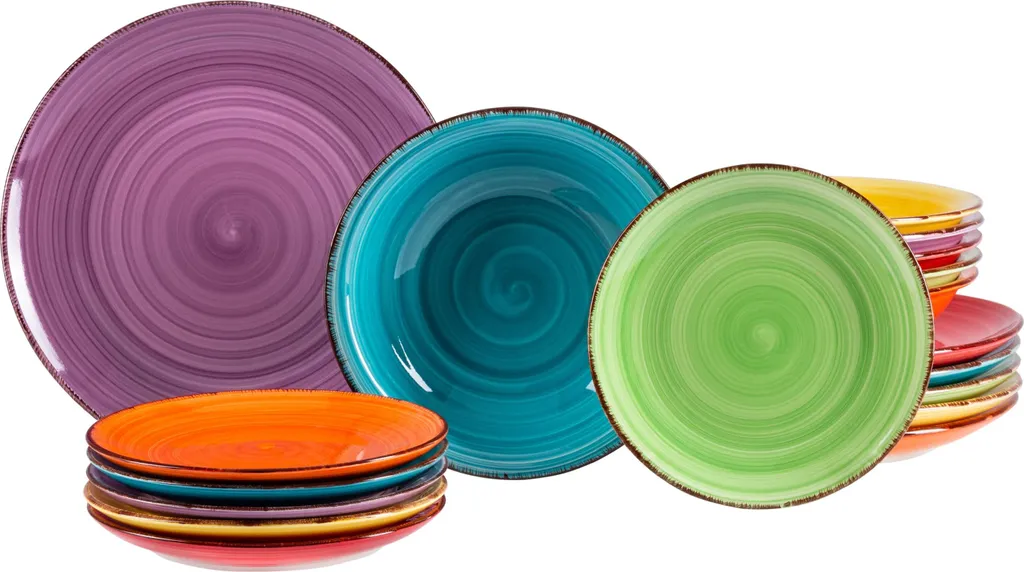 Service 18tlg. Tellerset Uni Bunt, Für 6 Personen In Unterschiedlichen Farben