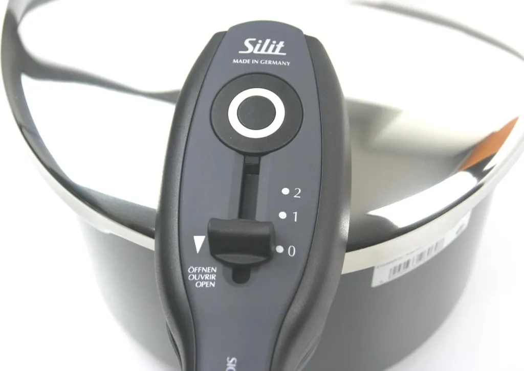 Silargan – Funktionskeramik mit en Oberflächen. Silargan Töpfe sind für alle Herdarten geeignet – auch für Induktion. Boden mit durchgezogenem Stahlkern und schneller Wärmeleitung sowie optimaler Hitzespeicherung für energiesparendes Kochen. Abdampfautomatik, Restdrucksicherung, Sicherheitsschlitz, Überdrucksicherung, Verriegelungssperre. 3 fest einstellbare Kochstufen (Schon-, Schnell-, Dampfkochstufe), Einhand-Kochstufenregler.