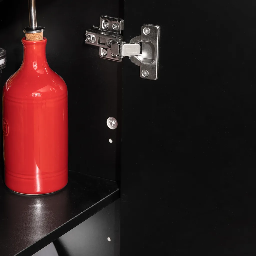 Der zweitürige Schrank verfügt über zwei verstellbare Innenböden, auf dem Sie Ihre Lieblingstöpfe und -pfannen aufbewahren können. Sie können die Höhe leicht an Ihre Bedürfnisse anpassen, da die Einlegeböden auf 3 festen Ebenen arretiert werden können.