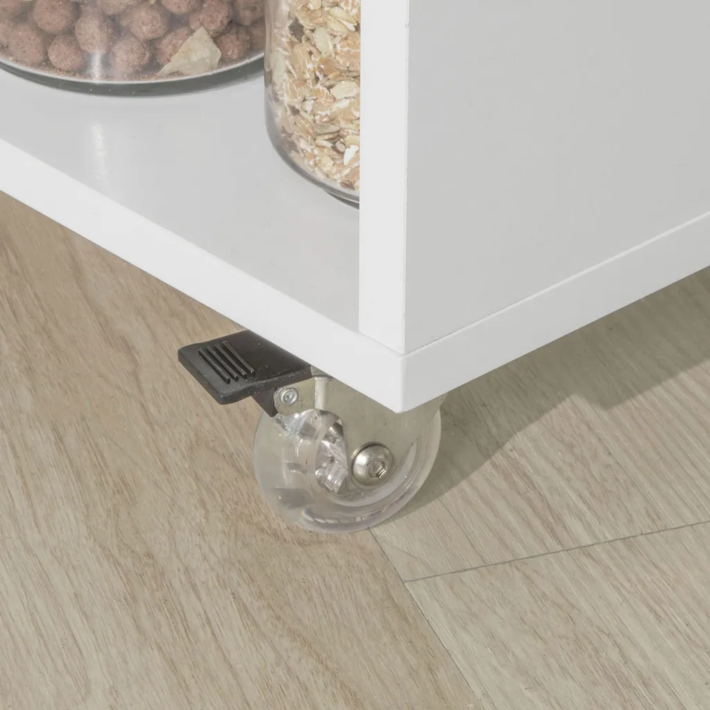 Dank der 4 Räder (zwei mit Stopper) können Sie den Küchenwagen an jedem Ort abstellen oder ihn mühelos durch die Wohnung rollen. Die Rollen laufen leise und geschmeidig