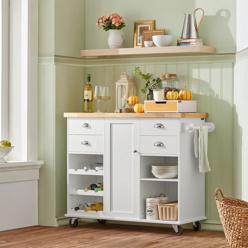 Mit den 4 hochwertigen Rollen können Sie den Küchenschrank dort platzieren, wo Sie ihn gerade brauchen.