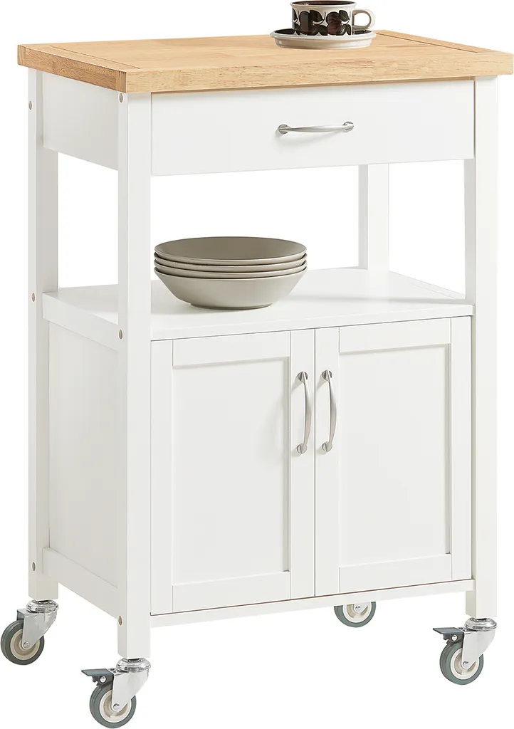 Praktischer Küchenwagen aus hochwertigem Holz mit viel Stauraum. für verschiedenste Utensilien in Ihrer Küche.