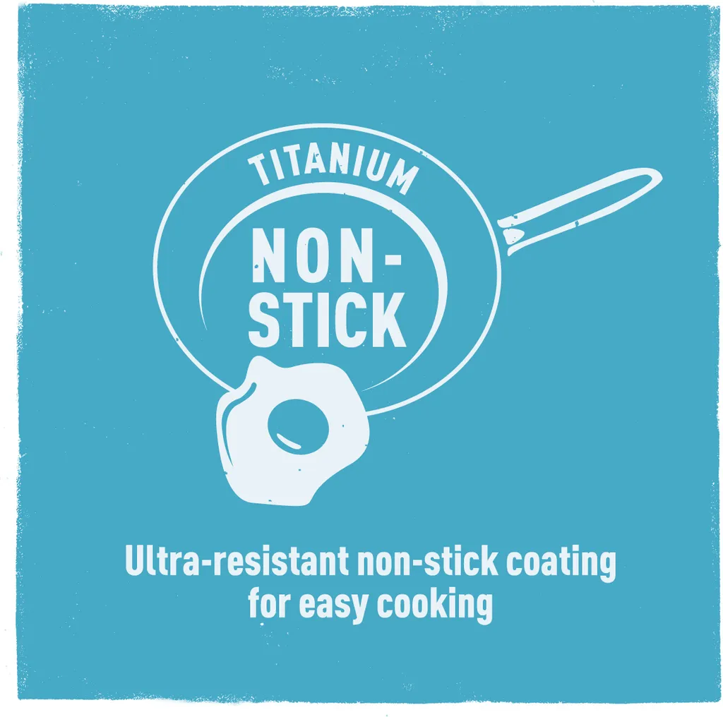Titanium Antihaft-Versiegelung: extrem widerstandsfähige Antihaft-Versiegelung verstärkt mit Titanpartikeln.