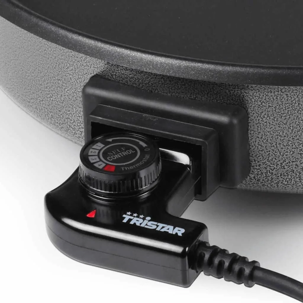 Die Tristar-Elektropfanne ist praktisch und bietet vielfältige Verwendungsmöglichkeiten. Dank 40 cm Durchmesser bietet sie viel Platz. Mit fünf verschiedenen Einstellungen kann die gewünschte Temperatur bequem eingestellt werden. Praktisches Design mit integrierten Handgriffen, abnehmbarem Netzkabel und transparentem Deckel mit Dampfaustrittsöffnung. Dank 1500 W Leistung erreicht die Elektropfanne rasch die gewünschte Temperatur.