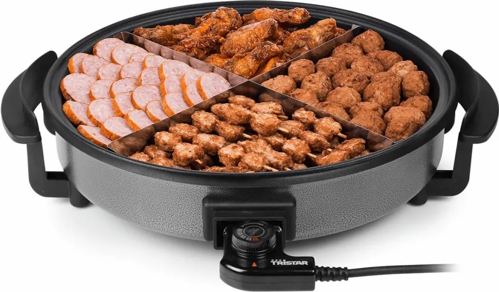 Die TRISTAR multifunktionale Grillpfanne ist die ideale Lösung, wenn Sie wenig Platz zum Kochen haben, aber dennoch schmackhafte Gerichte zubereiten möchten. In dieser praktischen, elektrischen Multifunktionspfanne kann man nicht nur braten, sondern auch problemlos backen. Von Bratkartoffeln und knackigem Gemüse bis hin zu saftigen Steaks oder leckerem Fisch. Außerdem können Sie Ihre Speisen sehr lange warmhalten. Dank automatischem Thermostat haben Sie jederzeit die Kontrolle über die Temperatur und erzielen so stets ein optimales Resultat.
