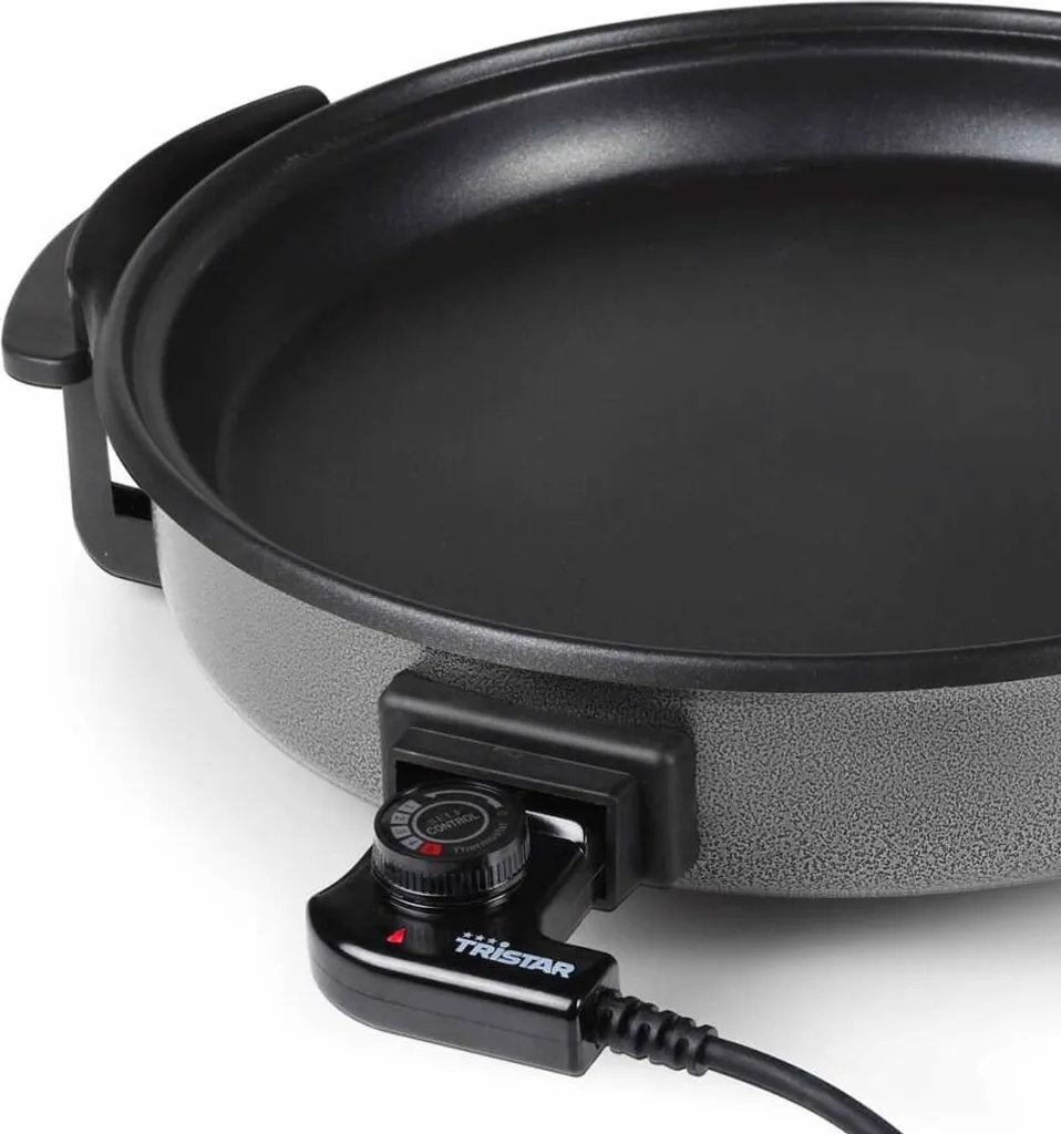 Tristar PZ 2964 – Partypfanne Paellapfanne zum Kochen, Braten, Warmhalten und Dünsten oder Pizza backen. 5 Leistungsstufen, Antihaftbeschichtung, mit wärmeisolierten Griffen und einem Durchmesser von ca. 40 cm.