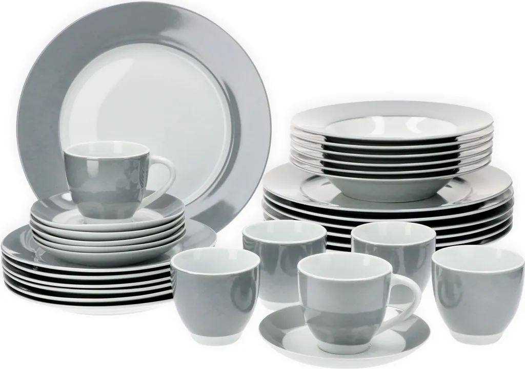 Van Well 30teiliges Kombi-Service, Serie VARIO, je 6 flache und tiefe Teller, 6 Dessertteller, 6 Kaffeetassen, 6 Untertassen, feines Porzellan, versch. Farben
