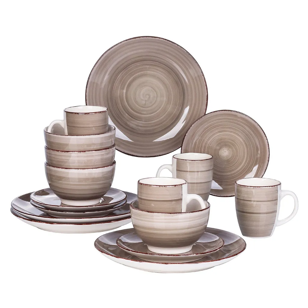 - Komplette Kollektionen. 16-teiliges Set besteht aus 4 Müslischalen, 4 Desserttellern, 4 Kaffeebecher und 4 Speisetellern, was zu einem perfekten Dinner für 4 Personen ist .